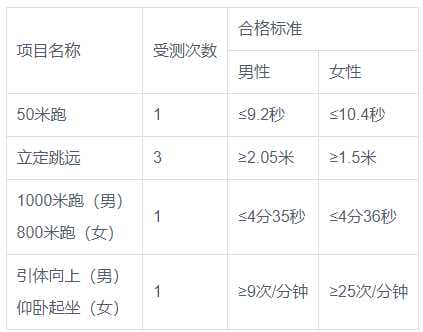 以上测试项目有3个及以上达标的,体能测试结论即为合格