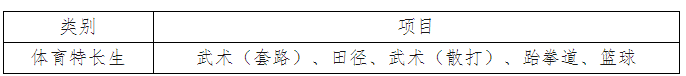 (一)武术(套路)项目:获得国家武术二级运动员或近三年荣获省级比赛前八名、市级比赛前三名;男女不限,现场测试时携带参加比赛时的秩序册及获奖证书原件。现场测试为拳术和器械套路展示。